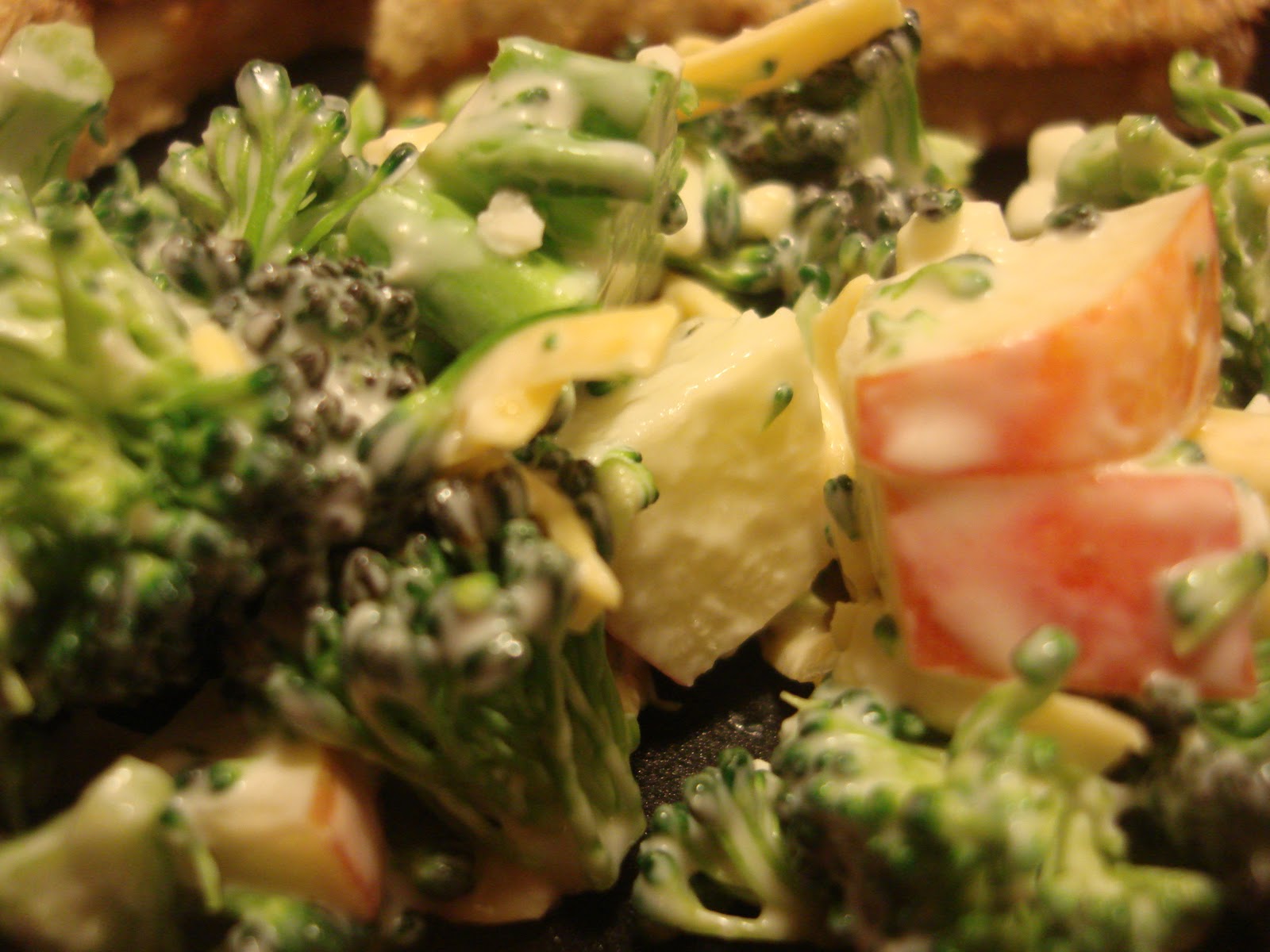A few days ago I searched high and low for a recipe for broccoli salad. The result: you don't need a recipe, as long as you have a good dressing! Just combine some of your (or your kids') favorite things, or you can keep it simple with just broccoli and crumbled bacon. Yum! On Valentine's day I used a head of broccoli (finely chopped), some shredded cheddar, a diced apple, and blue cheese crumbles and served it alongside heart-shaped sloppy joe's. The day before that I had bacon instead of blue cheese, which was equally as good! Like I said before, anything goes! You could also add raisins, green peas, sunflower seeds, almond slivers... be creative!